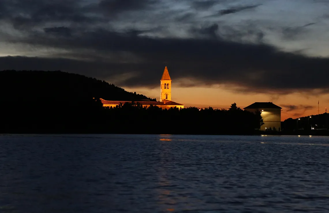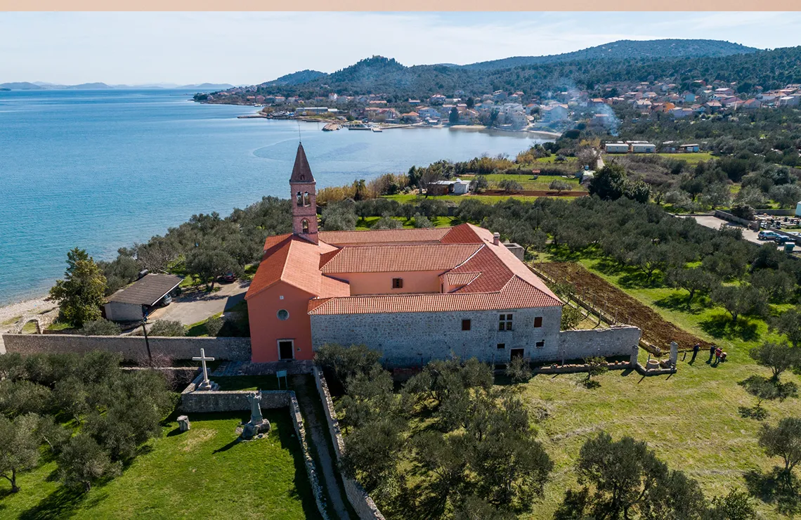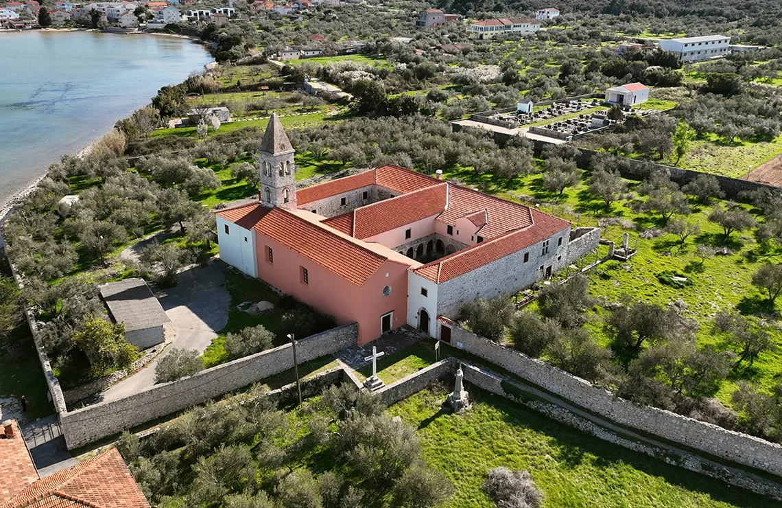 Franciscan Monastery and Church of St. Domnius built in gothic style in1392 are situated in the village of Kraj on the island of Pašman. The monastery and the church were built by a noble family on a property that Benedictines form Ćokovac gifted to the Franciscans. The Church of St. Domnius was mentioned on 8 April 1370 in a will in which Mavro, the son of Fran, Grisogono determined the building of the church as we know it today. On 22 June 1384, Mavro’s mother Pelegrina contracted Juraj Miljanović from Dubrovnik to build the church, and on 19 August 1389, she gifted the property to the Franciscans exiled from Bosnia (mentioned in the list of monasteries in the province of Sclavonia in 1382), and on 22 May 1392, she ordered building of a monastery for them. The construction of the monastery started probably in 1394, and it was finished in the second half of the 15th century. Later in the 17th century, the monastery was rebuilt in the Baroque style and the courtyard door of the monastery originate from that period (1669) as well. The provincial assembly on the unification of the Dalmatian, Dubrovnik and Bosnian vicarage was held in the monastery on 21 August 1464. The Venetians did not allow the Franciscans to stay on their territory, so the monastery became a part of the Province of St. Jerome (around 1580). During the past centuries, the friars and the monastery enjoyed the support of the Zadar noble families and rich citizens.